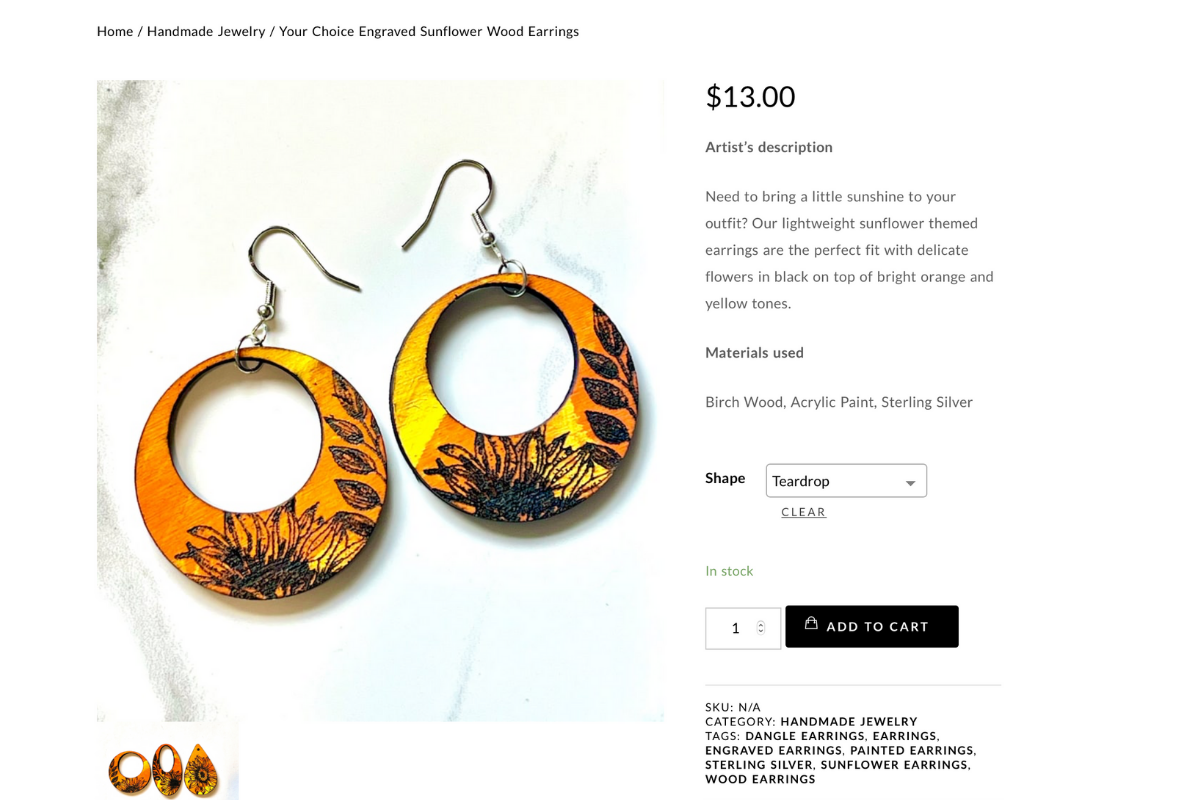 The website features lightbox galleries to showcase products, as well as purchase links on all photos for easy shopping. By using Woocommerce to build the shop, the artist is able to provide multiple selections and easily build customized products.